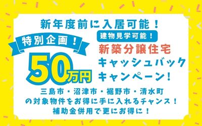12月31日(水)まで!〈三島支店:50万円キャッシュバックキャンペーン〉完成済新築分譲住宅(建売)が今ならお得!