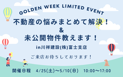 4月25日(土)~5月10日(日)GWだけの特別開催!不動産の悩み、全部まとめて解決します&未公開物件教えます!