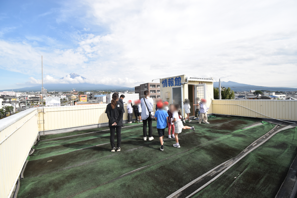 太陽光パネルが設置された富士山の見える屋上や事務所の中も見学してもらいました。