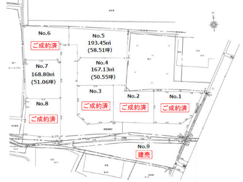 ※宅地内に電柱及び支線の設置予定がございます(2,3,5,8,9号地)。
