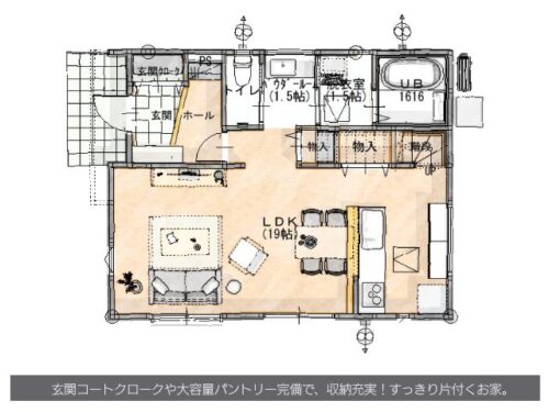 19帖のLDKは収納充実!