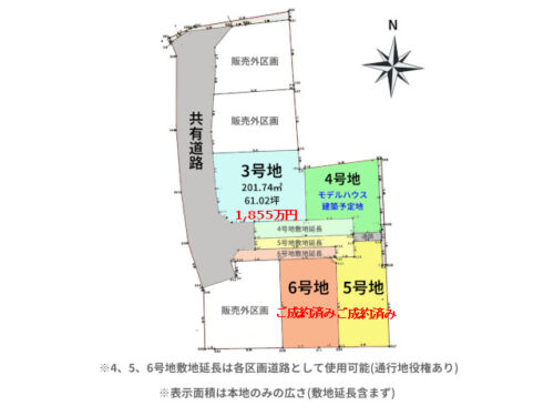 ※開発行為道路と避難道路部分の持分1/7を所有していただきます。
