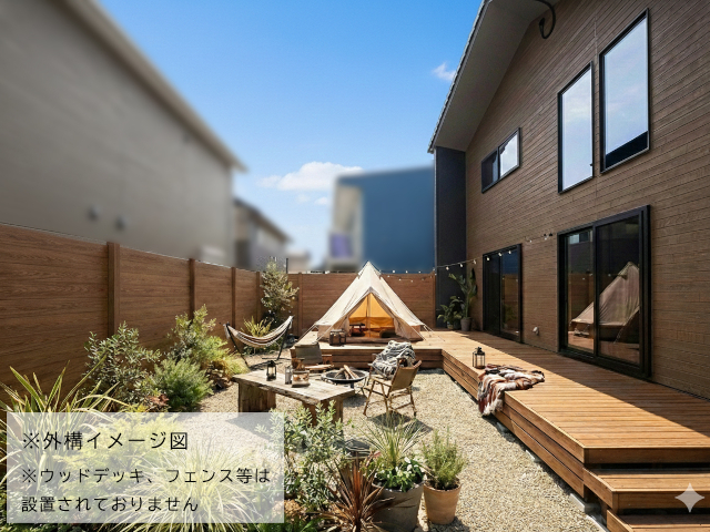※外構(南庭スペース)のウッドデッキ・フェンス等はAI生成による設置イメージです。実際には設置されておりません。