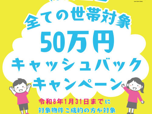 今だけ50万円キャッシュバックキャンペーン中!(令和8年1月末まで)補助金と合わせて210万円お得!