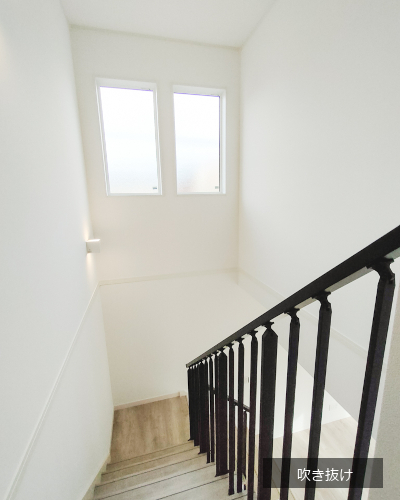 ★LDKに隣接したアイアン手すり付きの吹き抜け階段が高級感と開放感を演出