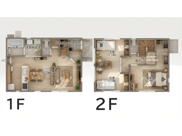 ※生活イメージ図は生活のイメージがつきやすいよう、色を付けたイメージ図です。間取り詳細や色合いは実際の物と異なる可能性がございます。