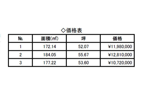 土地面積 | 172.14㎡(52.07坪)~184.05㎡(55.67坪) |