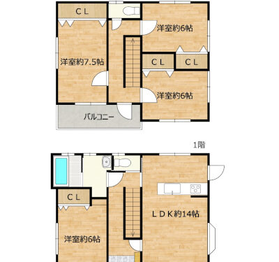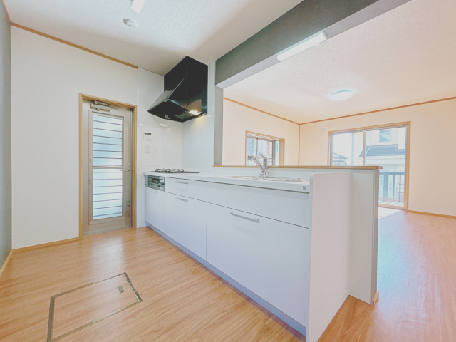 瑕疵保証付(不動産会社独自) 前面棟無 全室フローリング バス1坪以上 トイレ2ヶ所 バルコニー フローリング 出窓 勝手口 浄化槽 全居室6帖以上 ハイルーフ駐車場 対面キッチン 隣接建物距離2m以上 リフォーム済み