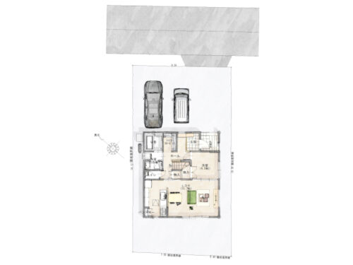 外観完成予想パース・間取り図・配置図・省エネ性能ラベル・建築予定地