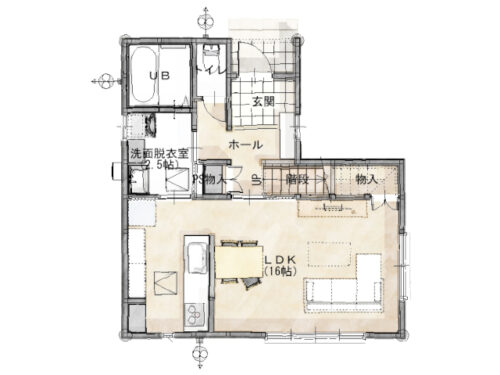 キッチン・洗面脱衣室・浴室が一直線の家事ラク動線!