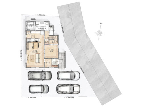 外観完成予想パース・間取り図・配置図・内観完成予想パース・建築予定地・省エネ性能ラベル