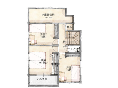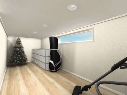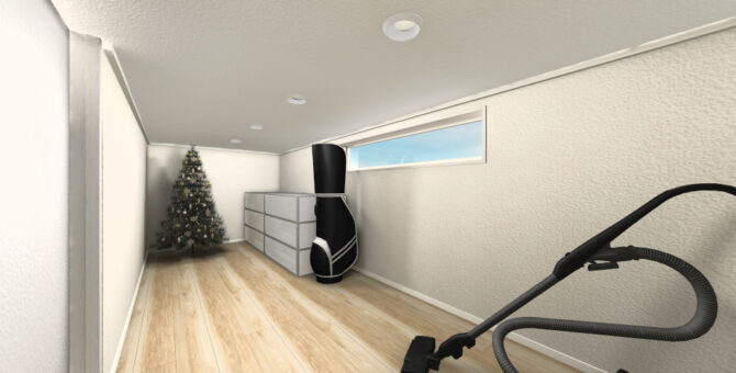 たっぷりしまえる5.5帖の小屋裏収納付き!