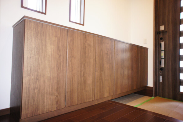 整理収納アドバイザー設計士が収納設計を監修した、ストレスフリーな住まいです。ランドセルなどのリビングに放置しがちな荷物を収納出来るおでかけクローゼットや、帰宅後すぐに手洗いが出来るよう玄関から直線の脱衣所外に配置した洗面台など、子育て世代のストレスを解消出来る様々な工夫がされています。