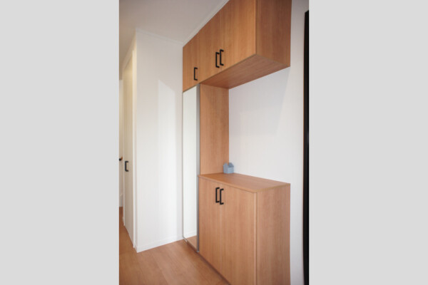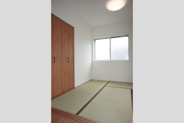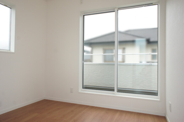 寝室は8帖でゆったりとした広さがあるので、奥様のドレッサーやご主人様のパソコンデスクを置くことが出来ます。クロスは、寝室にぴったりの落ち着いたカラーを採用しました◎