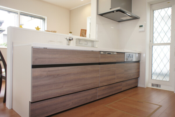 キッチンはリビングと和室が見える位置にあり、お部屋でお子様が遊んでいても目が届き、ご家族と話しながらの料理も出来ます。
