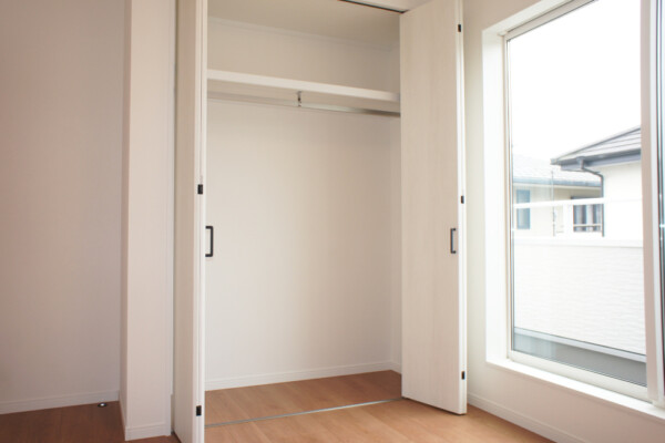 クローゼットには皺にしたくないものはハンガーで吊るし、下には収納ボックスなどを置いても余裕があります。