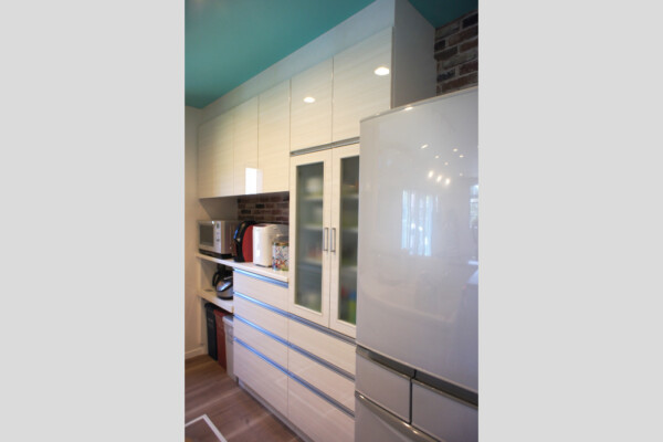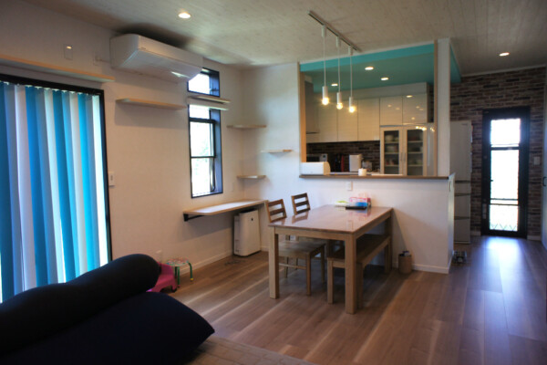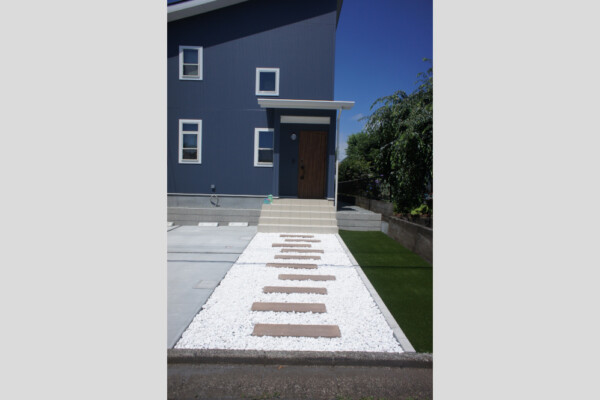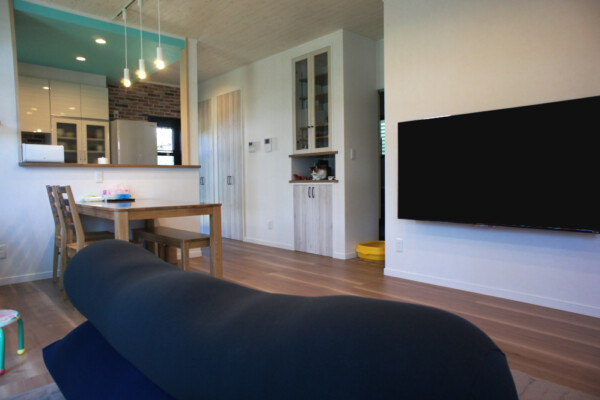 ブルーの外観が爽やかで、印象的なU様邸。収納スペースをたっぷりと設けたことで、お部屋を広々と使うことが出来ます。リビングのキャットウォークや、扉の下に設けられたキャットドアなど、ご家族の一員である猫ちゃんも暮らしやすいお家になっています。