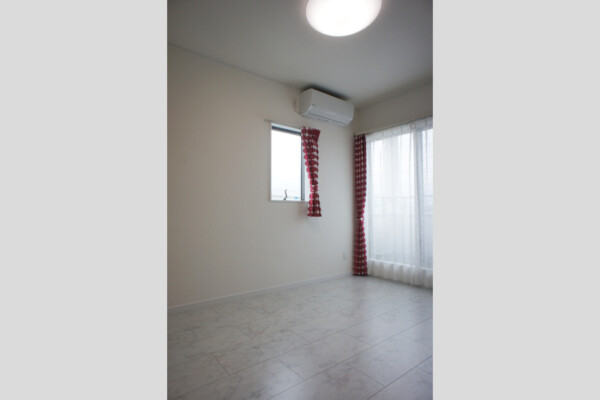 寝室はホワイトで統一され、清潔感のある空間です。窓からはバルコニーに繋がるので、布団干しも楽々です◎